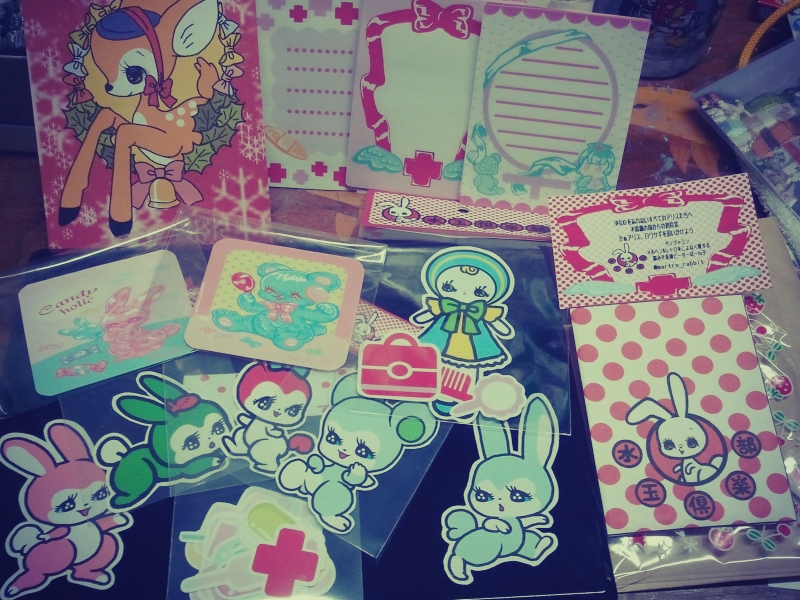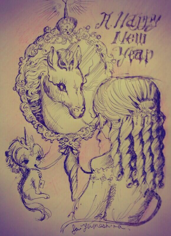 すべてが出遅れ・・・ とにかく あけましておめでとうございます!!!!!!! 今年は大好きな午年です! ザカザカいそいでかいた一枚。 まだまだ リアル生活ではやることが沢山です・・・。 お正月セールでかわいい靴を安くGET やった~ 本当はインドの靴がよかったのですが・・・。 最近私は物欲がなくて、洋服もいつも 古いものを好んできてるので 109とかのセールに ほしいものがなくて はやりの洋服やサンはつまりませんでした。 新しくかうのは 帽子やアクセサリーくらいかなぁ・・・。 祖母がつかっていたものなど ヴィンテージや アンティークものが大好きです。 あとはチュールや ビーズ細工によわいかな~~ いつもお世話になったり映画いっしょにみたりのじょあん君は 今年はじめからキャプテンジャックで営業はいって雇われ船長してました(笑) 余談ですが、私は毛皮をみにつけないのでこれ フェイクファーです。 アンゴラとか牛革・羊はべつだけどね! ちなみに年末よかった映画は クライベイビー。 めっちゃかわいかった。 ロカビリー好きにはたまらない! じょあんくんはもう繰り返しみてる映画らしいけど。 まだまだ見たくともみれてない映画はたくさん、 新作でのツボ作品は ここらへん。 ティルダ・スウィントンは 永遠の私の女神です。 私的に 月からきた人間の一人だと信じてやまない。 ↑また、年始にたべてた ガレット・デ・ロアで フェーヴがでてきて 年早々ラッキー!!!! 去年は大学を卒業し、年締めに宇野亜喜良さんとスパンアートギャラリーさんの 展示によんでいただけて。 師匠北見隆先生と 高田美苗先生に感謝の一年、 じょあん君をはじめとする 映画ジャンルの方(記者さんだったり映画好きさんだったりジョニーデップファン仲間だったり) と出会え、仲良くしてもらったり。 新しく仕事みつけたり・・・ 個人的にとてもよき一年だったようなきがします。 今年もアラタな出会い、発見、 やはり一番には 自分の技能の向上! ひたむきにもっともっと いい作品づくりをしてゆきたい一年です グッズ展開とか いろいろもっとしてゆきたいなぁ。 少しでも人々を驚かせたり感動してもらいたいな。 そうやって 自分の存在意義を証明するというか、 しかし 何事にも ソウル(魂)を感じさせるものをつくってゆきたい そしてもっといい仕事があったらいい仕事をとりたい! いまもとてもいい仕事なのですがね、 と こんなに欲が・・・!! 創作ブツには とことんストイックになりたいです。 前置きがながくなってしまいましたが、 ここをご覧になっている方々にとってもよき一年になりますように・・・。 今年も 夢島スイをどうぞよろしくおねがいします。 そして遅れてしまいましたが(また) この間の「私の劇場」展の開催の様子をお写真をお借りして書かせて頂きます! 写真があるので 続きを読むでおねがいします~! |
