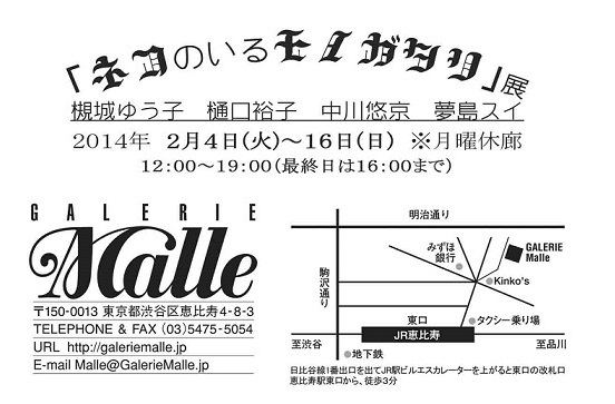 なんやかんや てんやわんやで もうすぐ展示です! 以前 目にはみえない生き物たち展に参加したときと 同じ画廊さんです☆ ▼ ネコのいるモノガタリ展 身近にいる「猫」をテーマにモノガタリを作家ごとに展開する展示です。 会期:2014年 2月4日~2月16日 12:00~19:00(最終日16:00まで) 月曜休廊 場所: 東京・恵比寿駅 ギャラリーまぁる (地図) ~参加作家~ 槻城ゆう子 樋口裕子 中川悠京 夢島スイ ということで 絶賛作品制作中です! 今回はドローイング+着彩で、仮額縁入り・・・ (本当に仮すぎて 白目) その展示のDMは今回私がはじめて担当しました! 本当にお騒がせしたこともあるけど(自分が主にパニクってた) なんとか かたちになりました;_;* モノガタリ、 なので 本からのびるツタのイメージで・・・ 赤はありきたりなので ロイヤルなイメージのブルーにしました! プリントパックさんで 印刷させていただいたのですがとてもキレイでお値段も安いので、 今度は個人的にポストカードを刷りたいです☆ はじめての WEB入稿・・・ やり方はわかったぞ・・・(いまさら) よろしくおねがいいたします☆ もしかしたら猫ちゃんネックレスの販売もできたらいいなぁと・・・ そんなにストックつくっていないのですが、 在庫があと 2個です。 ヒイヒイいいながらまだ絵をかいてるのですが まにあうの・・・か? そして この前の「私の劇場」展示にていただいた差し入れたち! 会期中レポにもあったように、 兵庫からきてくださったジョニつながりの英子(エイコ)さん、 きてくださった上におみやげまで;;; ありがとうございます;_; そのほかにも、手作りチョコ(とてもおいしかった!)や名古屋の焼き菓子まで!!! 焼き菓子大好きなので うれしい・・・ こちらは べんじゃみんさん より!!! これぜんぶべんじゃみんさんが 描き、つくったステーショナリー類!! グッズかわいすぎて メイク用品にうさちゃんシールはったりしてます☆ びっくりしたーー;_; ありがとうございます!!! 今回も来るだけの価値ある作品になるようにしこしこ・・・ リラックスした線画かきたいのに 雑なかんじにみえてしまうのをどうにかしたい。 今後の自分への課題です。 以下は上記の話題と関係ない日常のひとこまです(笑) 地元、元町から中華街にいく途中の裏道にある アンアップル、 ベーカリーショップ(ぱんやさん)なのですが、 ここのパンはじめてかってびっくり ものすごいおいしい!!!!!!! 自然酵母らしく ふんわりもっちり、中でもチーズパンが ものすごくおいしいです・・・ 店内はすごい懐かしいかんじ、 改装はしたものの 明治からあるみたいです、 ものすごい歴史をかんじる・・・ そして 80年代風な外見がなんか横浜の裏道とあってました(笑) また買おう・・・。 だまされたとおもって 横浜来た際には アンアップルでパン類を購入する価値大です。 そして もっぱら最近ハマっている エッグシングスのパンケーキ(笑) 太るとわかっていても きては半分たべてしまう・・・。 パンケーキでたべてない味はもうないかも!! ブルーベリーが一番すきです(笑) たまらない刺繍。 そして最近ずっとみたかった映画 オンリー・ラヴァーズ・レフト・アライブ みました!!! 上映してる映画館が数少ないのです。(こういうのはね ティルダスウィントンが大好きで おまけにヴァンパイアものだから みてきました!! ネタバレになるので 結末はいわないのですが、 エモーショナルな映画でした! 個人的に大好きな舞台設定。 背景。 やはり 何百年たっても ヴァンパイアはヴァンパイアだということ、 そのヴァンパイアの「非日常的な日常」を描いていると思いました。 人は儚く、時間軸でみるととてもちっぽけで一瞬のきらめき・・・ だからこそ せわしなく動く、生きる それを第三者の目でみつめているような。 シェイクスピアがかかわっていたり、個人的に萌えました。 兎に角、耽美と無常、 美学、 素敵でした! つきあってくれた じょあんくんありがとう~!!!!!! これぞじょにーでっぷそっくりさんだね~。超お気に入りですこの写真。 かっこいいしかわいい~! 一瞬サムネだと完全にジョニーとまちがえるわ(笑) そんなじょあん先生を見習って(?) ヒゲ活してみましたー(笑)←新しくじょあんくんがかった帽子でおふざけ。 ヒゲとデーモン小暮一歩手前のシャドウはジョアン先生がいれてくれた。 どばーーーーーーーん 爆笑 いがいとにてんじゃね!? と調子にのってます。 二人してジョニーごっこしてるのには笑えるけど。 ジャックのウィッグかぶらしてくれたー(笑) 感動~!!! これ 手作りってすごいな。 そして 作ったといえばもう一つ、 小さい頃から クラゲランプがあったらいいなぁとおもっていて、 たぶん市場さがせばあるとおもうんですが、 即席ではありますが つくりました(笑) こちらは 写真。 小さい頃の夢がひとつかないました(笑) 本当に幼少期から クラゲときのこがすきでした。 小さい頃すきなものっていうのは 一生すきなきがする・・・。 人間も人格的に比