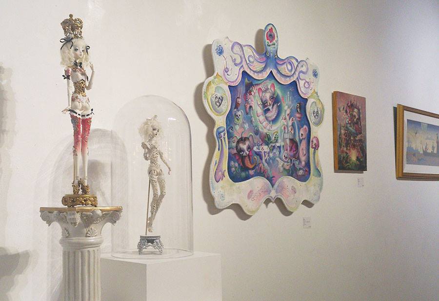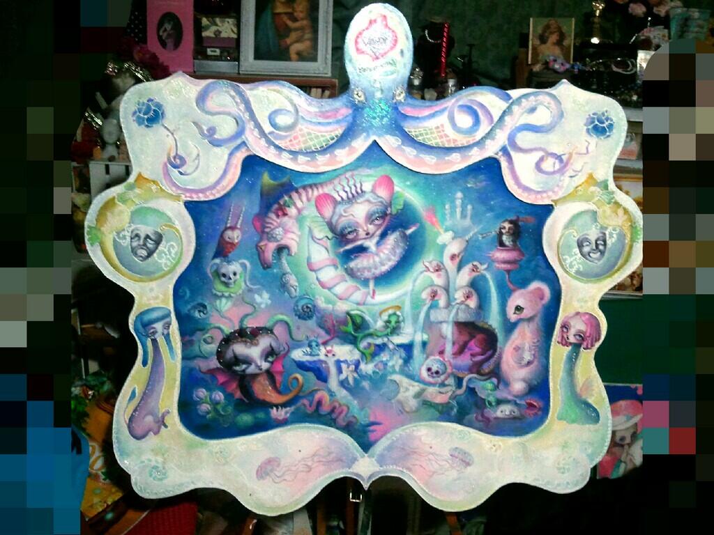 すべてが出遅れ・・・ とにかく あけましておめでとうございます!!!!!!! 今年は大好きな午年です! ザカザカいそいでかいた一枚。 まだまだ リアル生活ではやることが沢山です・・・。 お正月セールでかわいい靴を安くGET やった~ 本当はインドの靴がよかったのですが・・・。 最近私は物欲がなくて、洋服もいつも 古いものを好んできてるので 109とかのセールに ほしいものがなくて はやりの洋服やサンはつまりませんでした。 新しくかうのは 帽子やアクセサリーくらいかなぁ・・・。 祖母がつかっていたものなど ヴィンテージや アンティークものが大好きです。 あとはチュールや ビーズ細工によわいかな~~ いつもお世話になったり映画いっしょにみたりのじょあん君は 今年はじめからキャプテンジャックで営業はいって雇われ船長してました(笑) 余談ですが、私は毛皮をみにつけないのでこれ フェイクファーです。 アンゴラとか牛革・羊はべつだけどね! ちなみに年末よかった映画は クライベイビー。 めっちゃかわいかった。 ロカビリー好きにはたまらない! じょあんくんはもう繰り返しみてる映画らしいけど。 まだまだ見たくともみれてない映画はたくさん、 新作でのツボ作品は ここらへん。 ティルダ・スウィントンは 永遠の私の女神です。 私的に 月からきた人間の一人だと信じてやまない。 ↑また、年始にたべてた ガレット・デ・ロアで フェーヴがでてきて 年早々ラッキー!!!! 去年は大学を卒業し、年締めに宇野亜喜良さんとスパンアートギャラリーさんの 展示によんでいただけて。 師匠北見隆先生と 高田美苗先生に感謝の一年、 じょあん君をはじめとする 映画ジャンルの方(記者さんだったり映画好きさんだったりジョニーデップファン仲間だったり) と出会え、仲良くしてもらったり。 新しく仕事みつけたり・・・ 個人的にとてもよき一年だったようなきがします。 今年もアラタな出会い、発見、 やはり一番には 自分の技能の向上! ひたむきにもっともっと いい作品づくりをしてゆきたい一年です グッズ展開とか いろいろもっとしてゆきたいなぁ。 少しでも人々を驚かせたり感動してもらいたいな。 そうやって 自分の存在意義を証明するというか、 しかし 何事にも ソウル(魂)を感じさせるものをつくってゆきたい そしてもっといい仕事があったらいい仕事をとりたい! いまもとてもいい仕事なのですがね、 と こんなに欲が・・・!! 創作ブツには とことんストイックになりたいです。 前置きがながくなってしまいましたが、 ここをご覧になっている方々にとってもよき一年になりますように・・・。 今年も 夢島スイをどうぞよろしくおねがいします。 そして遅れてしまいましたが(また) この間の「私の劇場」展の開催の様子をお写真をお借りして書かせて頂きます! 写真があるので 続きを読むでおねがいします~! 続きを読む
