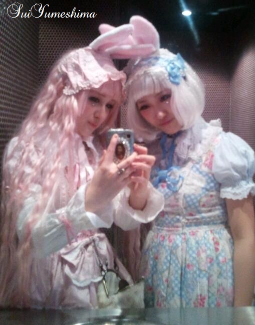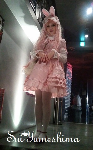 急にさそったのにきてくれて、 激甘うさぎあわせを快くひきうけてくれた ゆずちゃん みずいろ きゃわわわわ;;_;;; この甘ロリ服・・・・ 高校時代に購入したアンジェリックプリティのもので 当時(高校時代) アリスアンドザパイレーツやメアリーマグダレン、 イノセントワールドなどのクラロリ等路線のお洋服が大好きであつめていた私にとって めずらしい一着で、 思い入れがあるので 今も大切にしまってあったものです。 久々に日の目をみた・・・・・・・・・・・・・・・・・・ パニエがたりなかったり、 タイツも靴下も靴ももう 手元になかったので ありあわせでいってしまって それだけがこころのこり・・・ けど たのしかった!! パステルって幸せ色だね。 パニエもっとボリュームほしい。 そして 本当はボンネットがよかった。 もんくなしにかわいい!!!! 今度また デートしたい!!!!! そーーしーーーーて!!! えいこさん!!!!!!!!!!!!(以前のジョニーデップ来日れぽにて初登場+ それ以降、とってもお世話になってる バーチャルオカアサン(笑)でもあり友でもある えいこさん~~!!!) かわいいですよね メイクしました (これみよがしに自慢(笑) というか 普通にマッチしていて!!!!!!! ますます年齢不詳に!!!!!!!!!!! スッゴクにあってました! エドワードの優しい雰囲気がでてていいでしょう! そして泉さん!!!!!!!!(これはアフター写真(笑)) 私のかぶっていたシルクハットをかぶって 往年のタカラヅカトップスター風に(笑)! さまになっている こちらの方も 出会いはえいこさんと 同時期でありんす!!! 本当にノリがよくて 話していて明るくなれる 素敵なお方です☆ よき尊敬すべき えいこさんと泉さんは 本当にはなしてて楽しい~~~! 今回、泉さんにジョニー系ブレスレットをお土産といって いただいてしまいました! かなりの頻度で つけてます!!!!!!!!!!! おしゃれなおみやげ ありがとう 泉さん;_;;;; 真ん中の銀のドクロがついているやつ!!!! ガラスビーズに銀で 重厚感あって、 みえてないけど ヒモもながめで さきっちょにビーズがついててとっても とってもとってもかわいいんですよ~~~~!!!!!! じょあんくんは 赤! 本当にありがとう;;_;;; ありがとう;;_;;; 宝物がまたふえた♪ 会場の様子↑ DJブースあり~の ステージあり~の 物販や 特殊メイクブースあり~の 仮装の人がたくさんい~の にぎわってました~~~~~!!!!!!! 写真とられたり とったり レイヤーさんのコス会場みたいでした(笑) ステージは人間国宝の一龍斎貞水さんの怪談話きいたり ヴィジュアル系バンド ノイズさんがきたり オーラルヴァンパイアさんだったり もろもろもろもろ ステージバックに後光がさしてるトントじょあんくん(笑) ポツネ~ン エドワード 夜遊びをおぼえる(笑)WWWWWWWWWWWWWWWW 本当にえいこさんは元気いっぱい!!! もう本当にいまが青春!!!!! エドワードがビートにあわせてダンスしてる 動画もばっちりとってありますけど 身内ネタなので これまた割愛(笑)!!! かわいいんだよ! エドワードにあってるわぁぁぁあ 今年の主催者のD・ZOMBIE館長さん でっかかったです(笑) 悪魔だ~~!!!! うしろの セクシーで美しいキャットウーマンもきになるところ(笑)!!! 館長さんところの常連さんの 以前も一緒に写真をとったことがある うぃっちロウズさん!(グリーンの魔女!!!!) 今回で このハロウィンパーティ 10年の歴史があるようですが 最後らしいとのことで 一度でもいけてよかったです・・・。 モニターの中の世界にいけた(笑) 10周年最後ということで、 クラシックな魔女で常連さんはあわせていたような すごいなぁ~~ 団結力! このあと 館長さん、DJと 衣装チェンジで パンプキンキングになってました!!! 写真うまくとれなかったんでのせられないんですけど 効果音で説明すると・・・ かぼちゃがパッカァーーってなって スカルで ビカビカーーーーって!!! そしてそして~~!!!!!!!!個人的に興奮したのが グロテスク絵画やブンダーカンマーがはやった時代の有名な画家 アンチン・ボルドーの絵画仮装!!!!!!!! これは 夏とか秋とかがまざってるのかな!!!!!! 本当に興奮した~!!!!!!!!!!WWWWWWWWWWW まっさきに ときめきました!!!!! お名前きくのわすれた orz そして美しいこの孔雀の女王様は VIVIさん! 美しい肉体は 日々のポールダンスできたえられているのだそうな・・・! すっごく美しくって、 仮装で賞もとってらしたよう! うなづける!!!! 一番はなやか・ゴージャスで 大好きな雰囲気でした、 お話してみると とってもきさくで今後とももっとViviさんがしりたい! ということで 勝手にお知り合いにならせていただきました! 彼女の思想とメイクや 美に対する概念などなどなど 興味はわくいっぽう! 本当にありがとうございました! はずかしいけど じどり。↑ 少女のままでいたいような、 愛されたいような そんな現代少女を投影したいというのが 裏テーマの今回(笑) いつもとちがうかんじ ふだんは バリバリアンティークやシンプル、異国な雰囲気の服装思考です。 いろいろ写真はとったりしたのですが 莫大だ